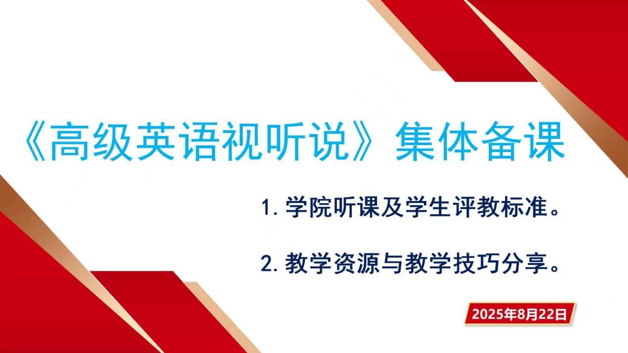 针对“听力视频如何高效处理”与“课堂互动如何深度激活”两大教学痛点,高级英语视听说教学团队于新学期伊始组织了一次集体备课活动,全体任课教师积极参与,共同研讨以提升教学质量。