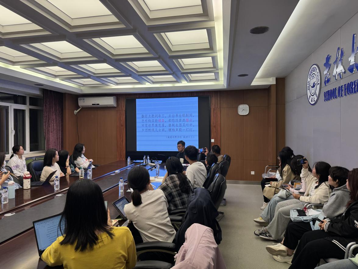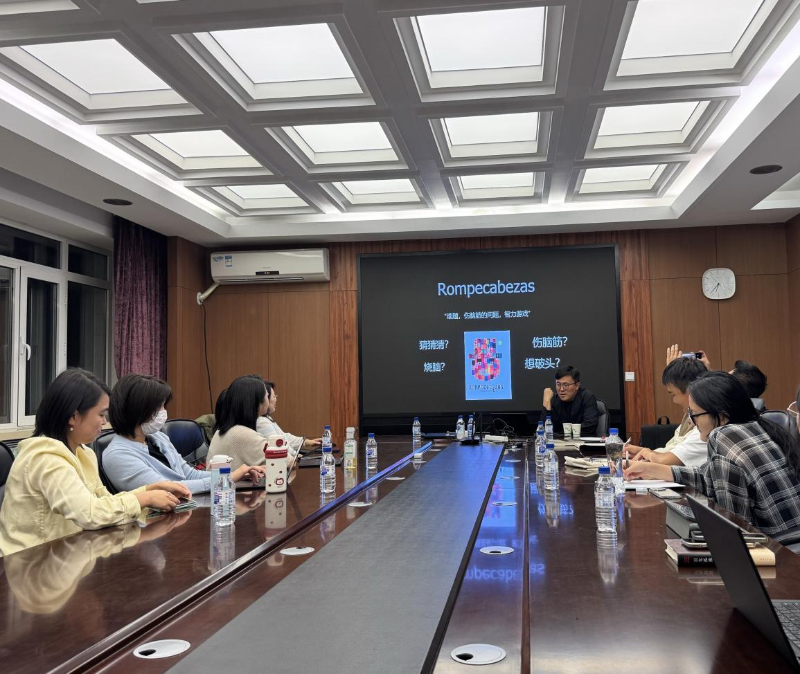 太阳集团官网西班牙文系建系25周年系列庆祝活动于9月拉开帷幕。21日晚18点,系列讲座首场在中心校区外语楼318会议室举办。中国外国文学学会西葡语文学研究分会会长、知名译者、北京大学西语系范晔老师受邀做题为《摸象与雕虫,或我的“战败者见闻录”》的学术讲座。来自44118太阳成城集团、文学院等学院的西班牙语学习者、文学爱好者参加了本次讲座。