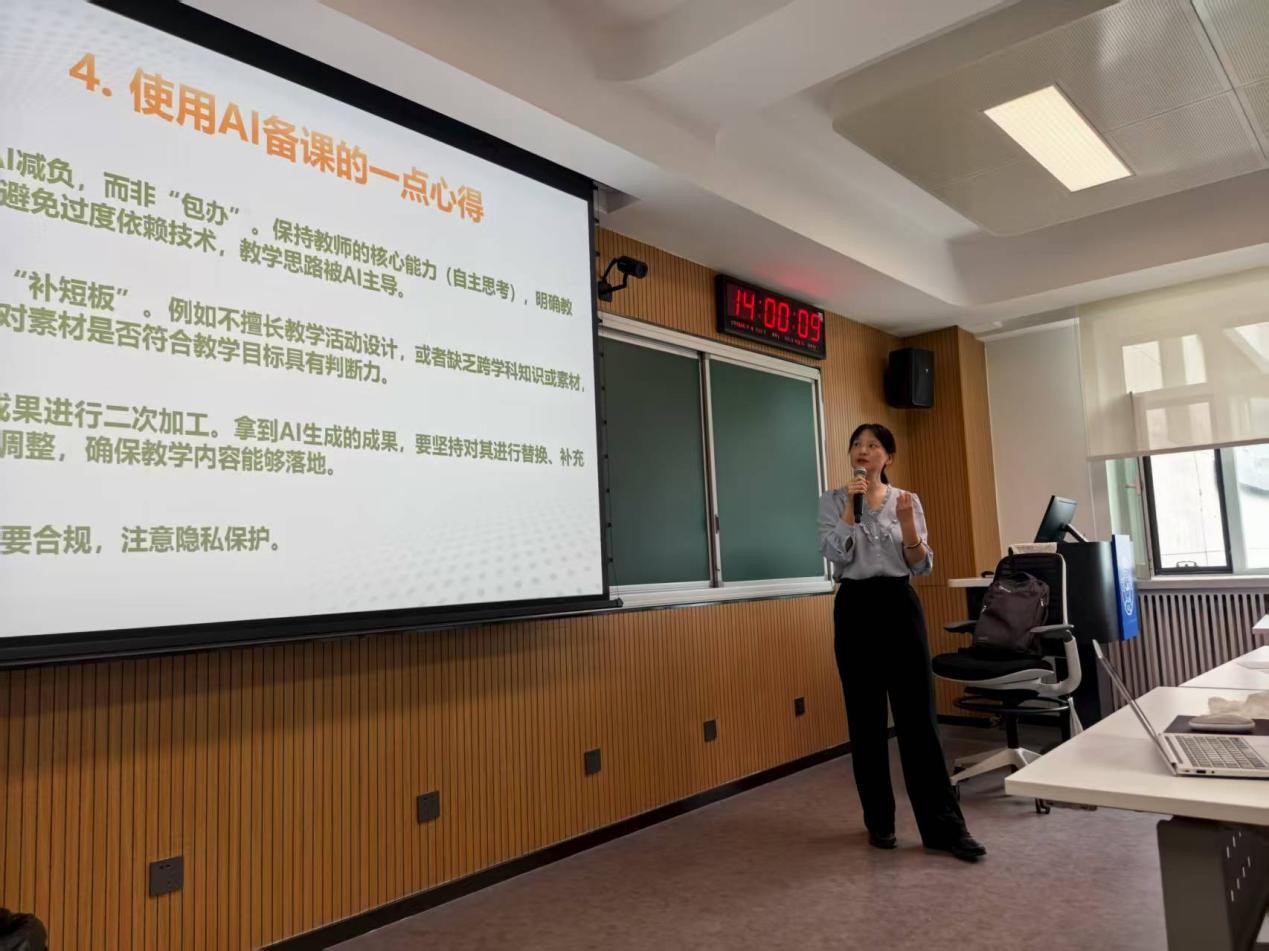 最后,报告中强调了在数字时代使用AI辅助备课和教学的重要性,以自身为例,展示AI工具在活动设计中的使用,为与会教师提供了直观的可借鉴范例。在数字化转型的今天,信息技术与教育的融合日益深化,吕老师教育理念先进,她的分享再一次引起教师们对人工智能工具在教学中使用的重视。