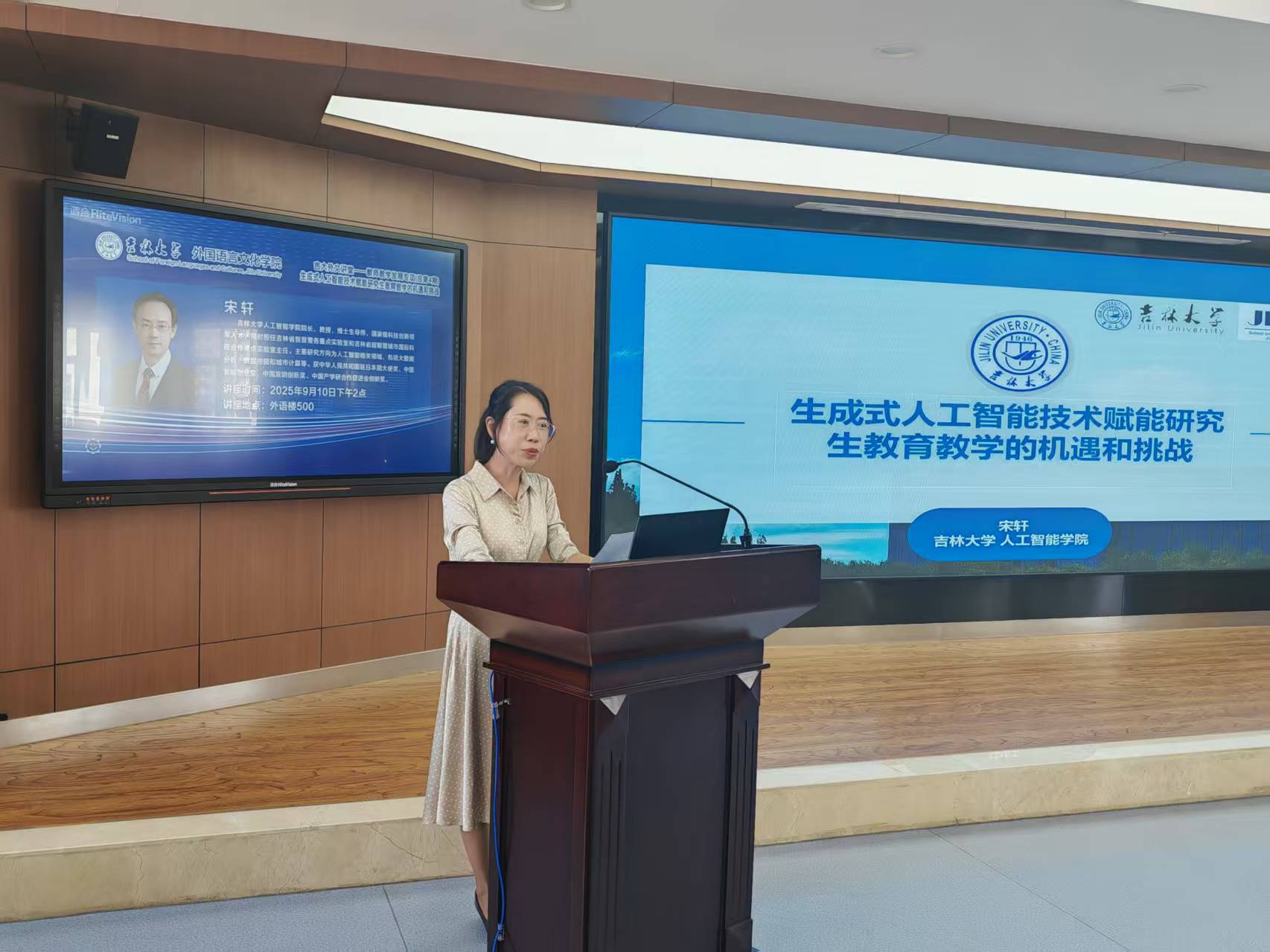讲座尾声,金晶副院长进行总结。她表示,此次讲座精准对接了学院教师在数智化教学中的实际需求,宋轩教授的分享既有理论高度,又有实践指导意义,为教师们打开了“技术赋能教学”的新视野。在数智化浪潮下,外语教师既要坚守语言教学的核心本质,又要主动拥抱技术变革,将 AI 工具与教学创新深度融合,切实提升研究生外语教学的质量与效率。
