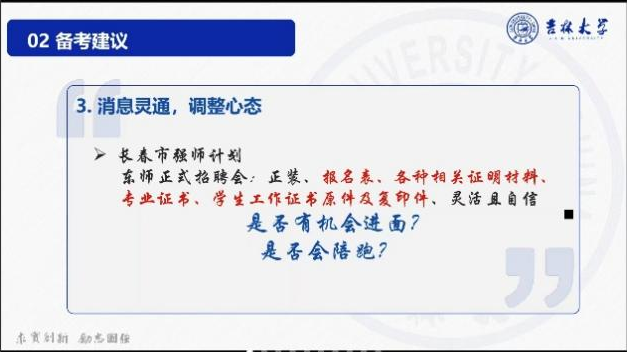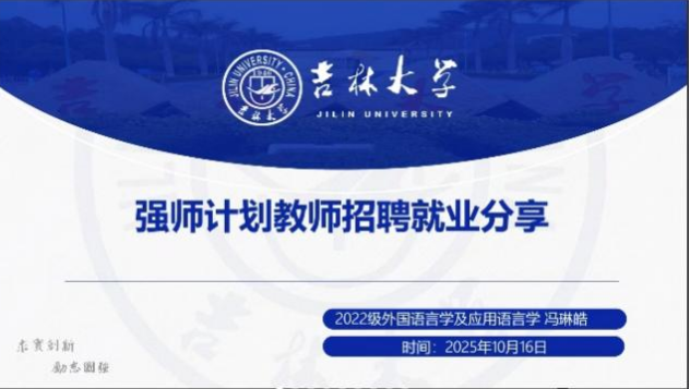 冯琳皓从强师计划、备考建议、就业碎碎念三方面展开分享。强师计划板块,她详解核心内容与信息获取渠道,助力大家深入了解;备考建议板块,结合自身经验建议尽早了解目标岗位、制作简历,提前备材料、练试讲,并保持消息灵通与好心态;就业碎碎念板块,针对 “如何度过艰难择业期”,分享看法并鼓励大家多尝试、多复盘、多豁达,积极应对就业挑战。